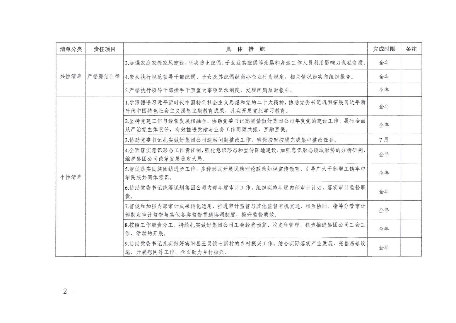 領導班子其他成員2024年度黨風廉政建設“一崗雙責”清單(二)