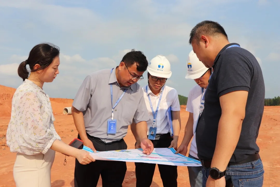 為進一步推進項目建設(shè),解決存在的問題,5月12日下午,集團公司黨委書記、董事長、總經(jīng)理楊漣帶領(lǐng)交投園區(qū)公司黨支部書記、董事長陳海華,投資發(fā)展部、項目部及項目參建單位的有關(guān)人員到項目現(xiàn)場檢查指導(dǎo)工作。