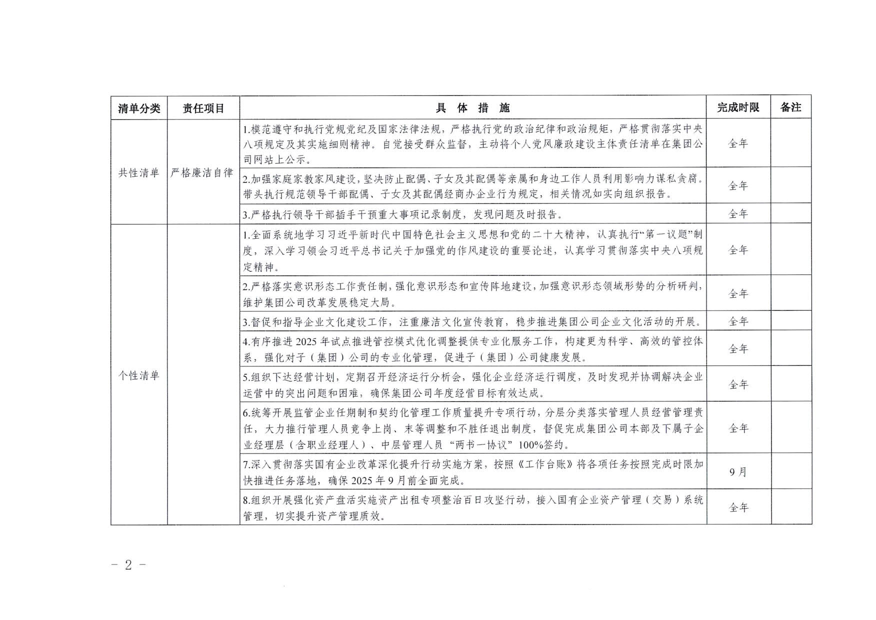 南寧交投集團領(lǐng)導班子其他成員2025年度黨風廉政建設(shè)“一崗雙責”清單(二)