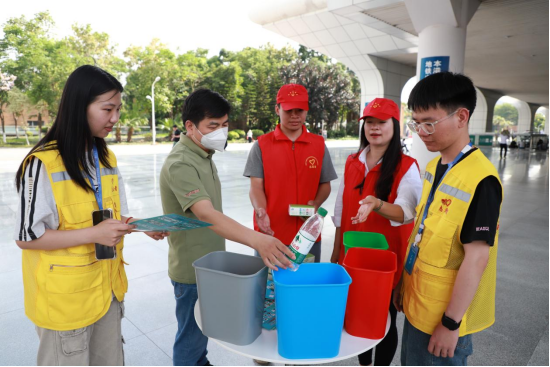 5月13日,南寧礦業(yè)集團(tuán)聯(lián)合康城汽車(chē)集團(tuán)在南寧東站開(kāi)展“垃圾分類齊參與 四色分類記心間”志愿服務(wù)活動(dòng),將綠色文明課堂搬進(jìn)交通樞紐,通過(guò)沉浸式互動(dòng)體驗(yàn)讓垃圾分類知識(shí)“活起來(lái)”。
