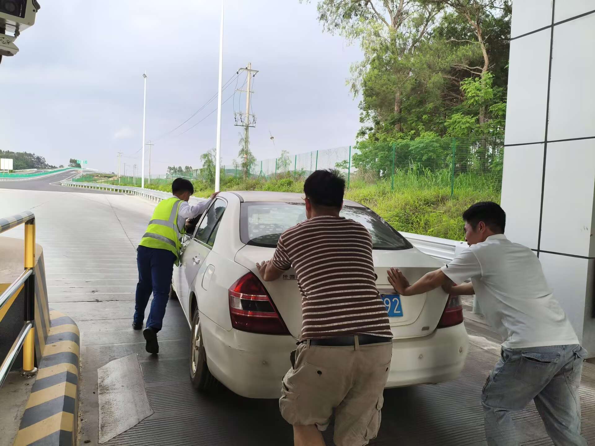 6月11日17時(shí)許,一輛白色轎車在途經(jīng)林橫高速陶圩收費(fèi)站完成繳費(fèi)后突發(fā)故障,引擎無(wú)法啟動(dòng)。當(dāng)班收費(fèi)員蔣雨潔與覃新恒見狀立即上前,并在第一時(shí)間將情況上報(bào)監(jiān)控中心,隨后幫助司機(jī)將車輛推至外廣場(chǎng)安全區(qū)域,保障了收費(fèi)現(xiàn)場(chǎng)車輛的順暢通行。此外,收費(fèi)員還主動(dòng)協(xié)助司機(jī)排查車輛故障。在收費(fèi)員的幫助下,車輛順利啟動(dòng),司機(jī)緊握收費(fèi)員的手連聲道謝:“十分感謝你們的幫助,為南寧高速的暖心服務(wù)點(diǎn)贊!”