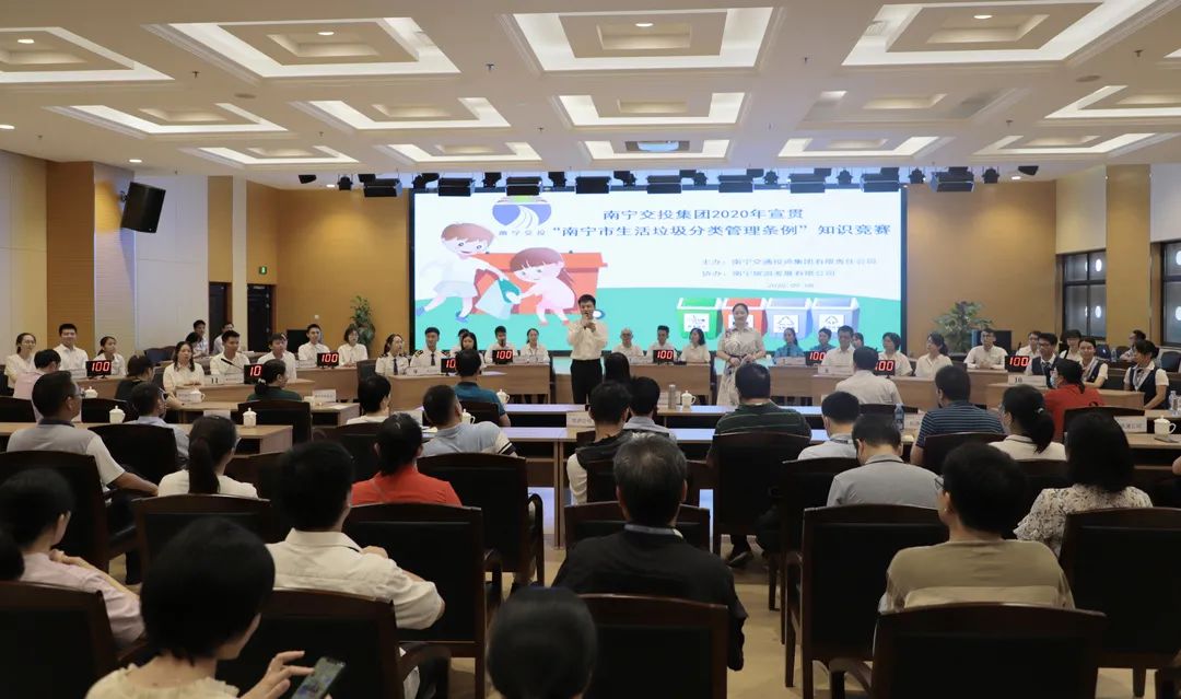 為貫徹落實(shí)習(xí)近平總書(shū)記對(duì)垃圾分類(lèi)工作作出的重要指示精神,倡導(dǎo)廣大干部員工共同參與垃圾分類(lèi),樹(shù)立綠色的環(huán)保意識(shí),9月8日,集團(tuán)公司在四樓多功能報(bào)告廳舉行“垃圾分類(lèi)我先行·創(chuàng)建文明齊參與”專(zhuān)題知識(shí)競(jìng)賽。集團(tuán)公司領(lǐng)導(dǎo)農(nóng)明姬、張玉波、黃海燕,南寧市國(guó)資委綜合科科長(zhǎng)謝雄勝以及市屬八大集團(tuán)相關(guān)人員出席比賽。 本次比賽各子公司共組成11支隊(duì)伍參加,比賽設(shè)置必答題、搶答題、互動(dòng)答題和加賽題四個(gè)環(huán)節(jié),題目涵蓋了《南寧市生...