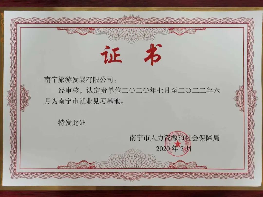 旅發(fā)公司被認(rèn)定為2020年南寧市就業(yè)見習(xí)基地
