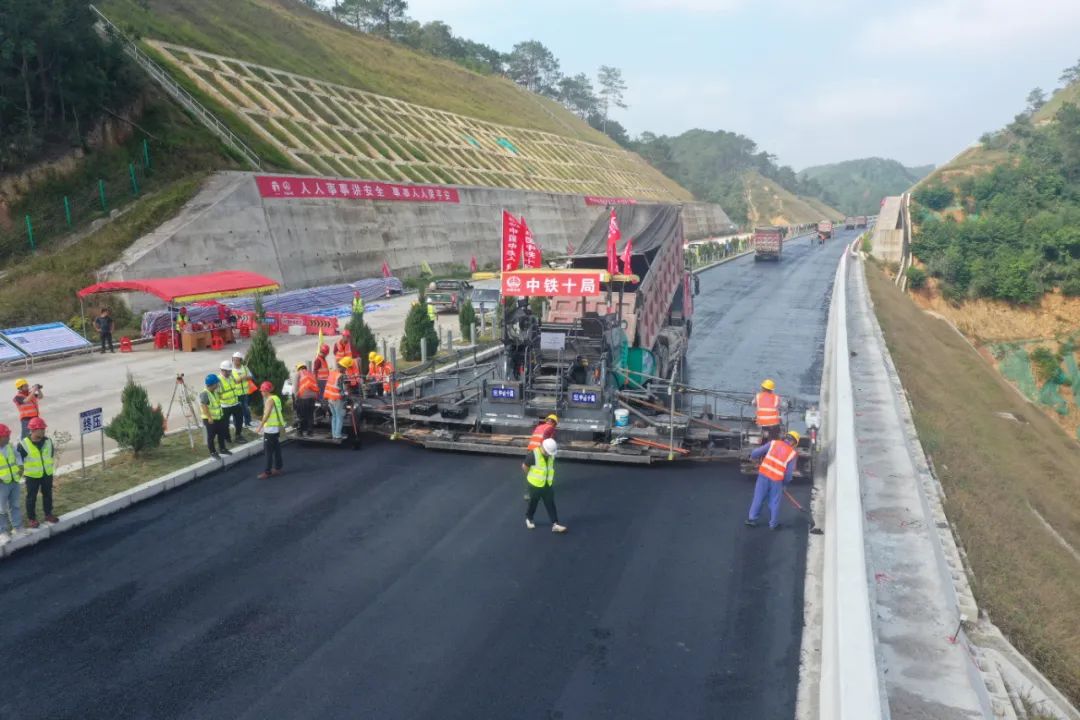上橫高速公路完成首段瀝青下面層試驗(yàn)段攤鋪?zhàn)鳂I(yè)